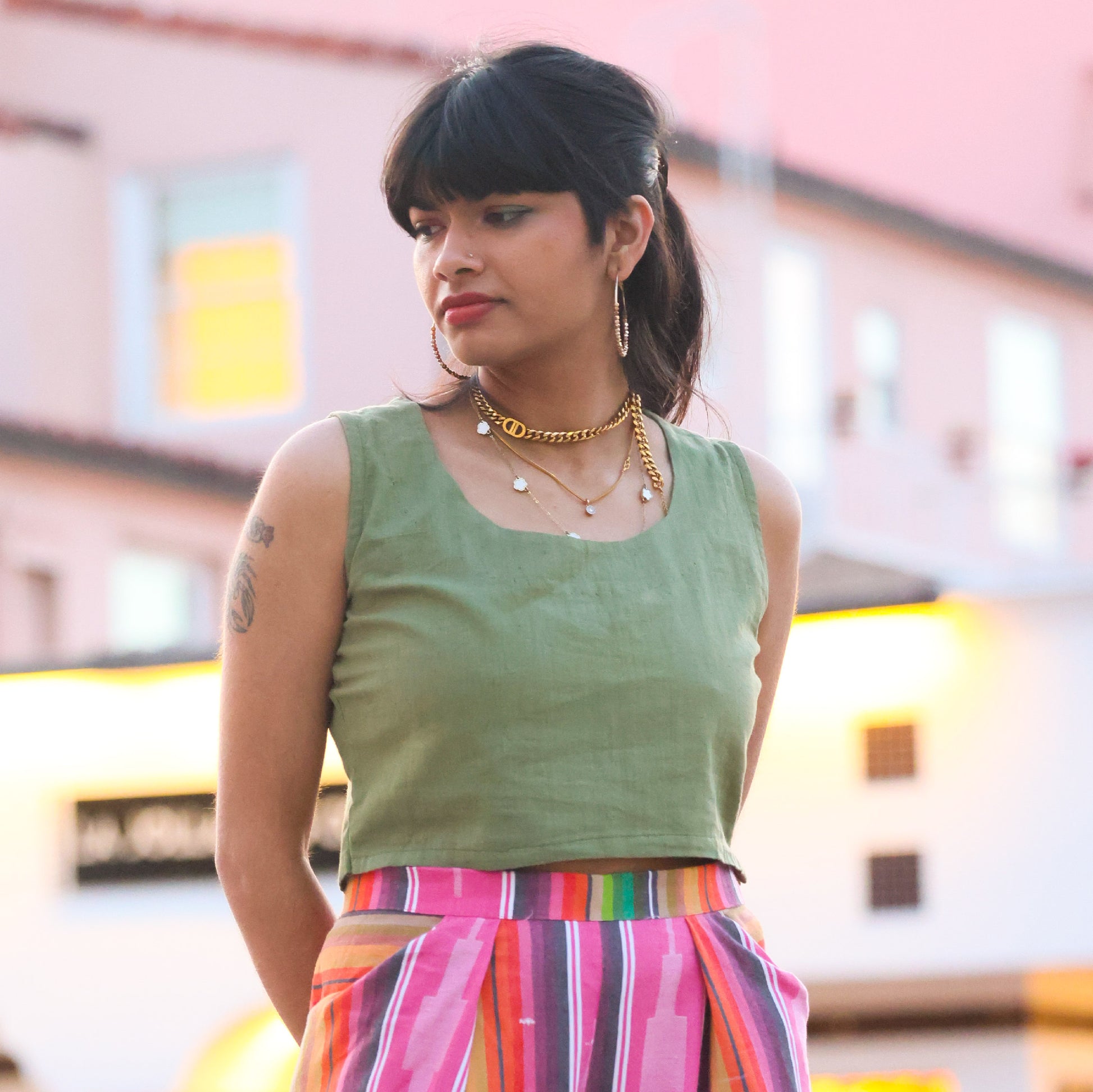 Effortlessly minimal, endlessly versatile. Crafted from breathable organic cotton, this cropped top drapes with ease, featuring a clean neckline and relaxed fit. Available in Ivory, Sage Green, and Hot Pink — from timeless neutrals to a bold pop of color