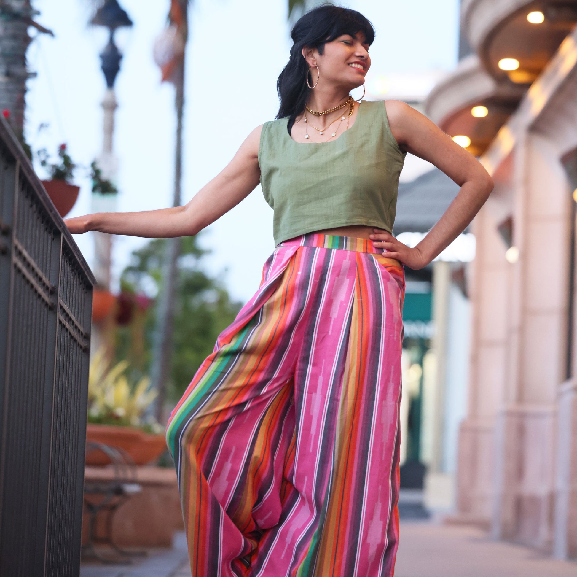 Stand out in Aivari's Vibrant Flow Pants. Made from surplus frabric, these lightweight and breathable pants deliver all-day comfort and effortless style. Perfect for pairing with solids or matching sets, they’re a statement piece for any occasion. Refresh your wardrobe with bold, conscious fashion. Comfort meets statement style.