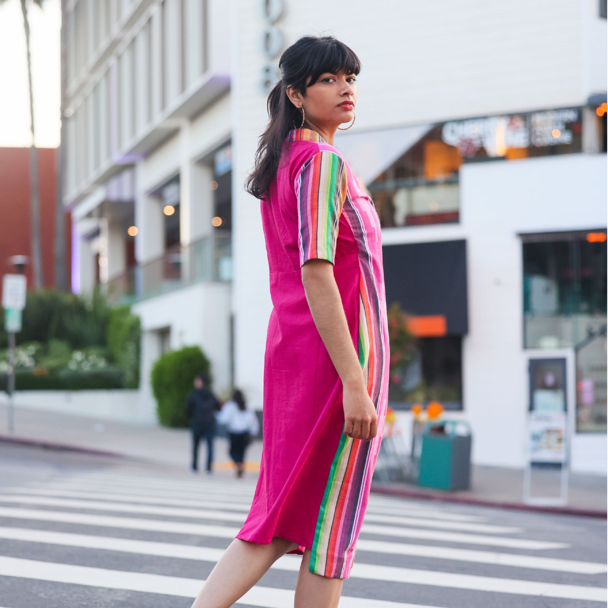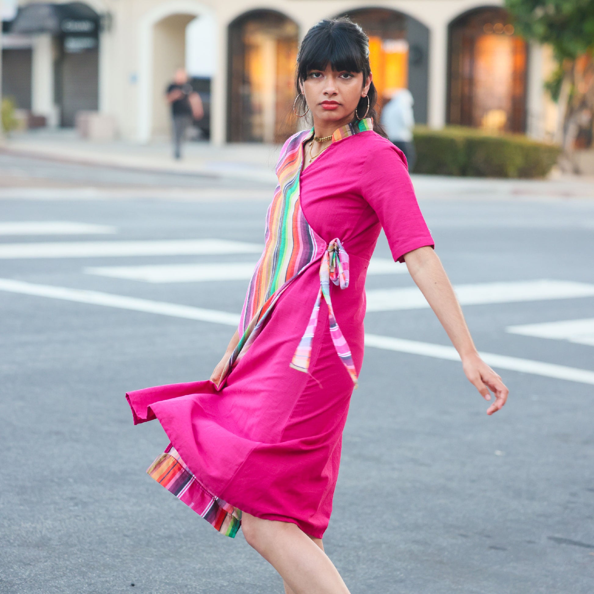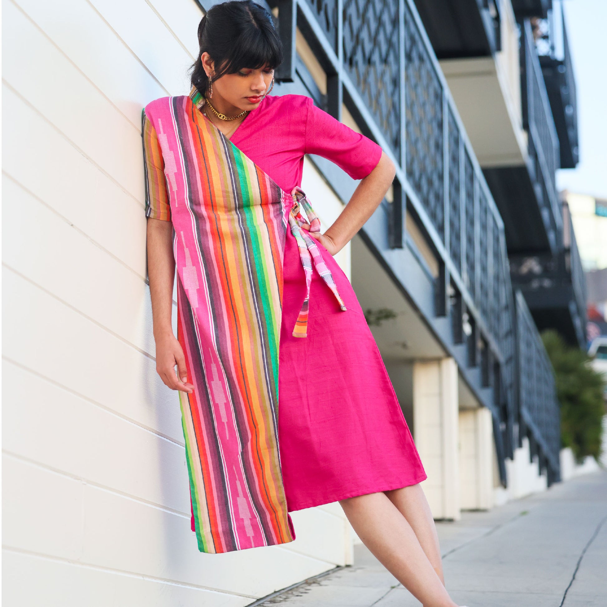 Wrap yourself in color and heritage with the Jamakalam Stripe Wrap Dress from Aivari. Inspired by traditional South Indian Jamakalam weaves, this classic wrap silhouette brings vibrant stripes to life with a fluid drape and effortless elegance. Crafted from surplus materials for truly sustainable style, it’s lightweight, comfortable, and perfect for both casual days and standout occasions. Elevate your conscious wardrobe with bold tradition and modern flair—all in one striking, easy-to-wear dress.